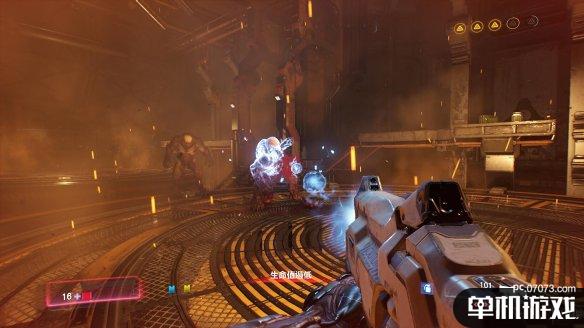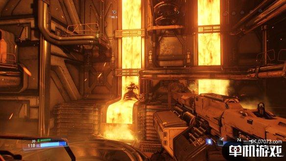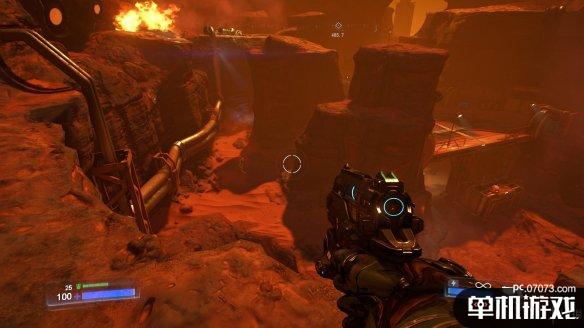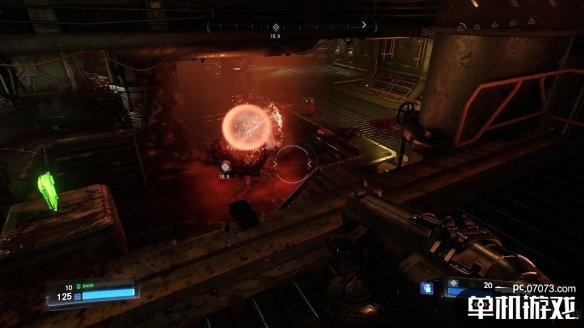 接着区域内会封锁并且从各处刷新出怪物,我们需要将这里传送出的怪物全部消灭才能继续前进,这里主要的怪物还是幼魔,设施内部多处有炸药罐,可以开枪引爆。小心幼魔的远距离扔火球。