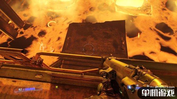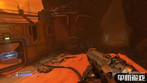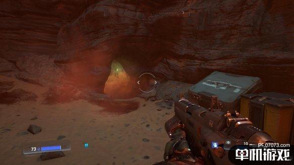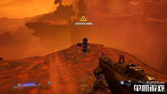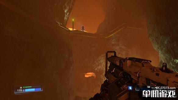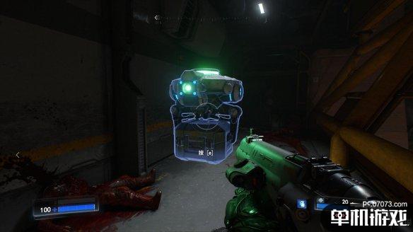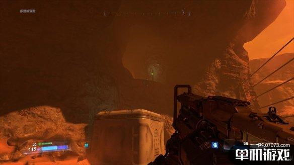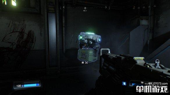 5,返回到高处,跳到右边的平台去,在洞口就能看到无人支援机,从它身上得到强化武器的部件,装备上后你的霰弹枪能通过右键蓄力得到更强大的攻击方式。