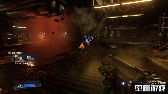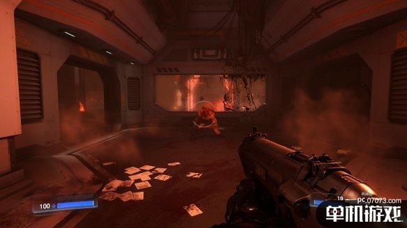3,撑开阀门,门口就是一只幼魔,这种怪物的速度很快,更加灵活,同时会远距离投掷火球。用刚到手的霰弹枪狠狠来上两下,然后近距离终结。