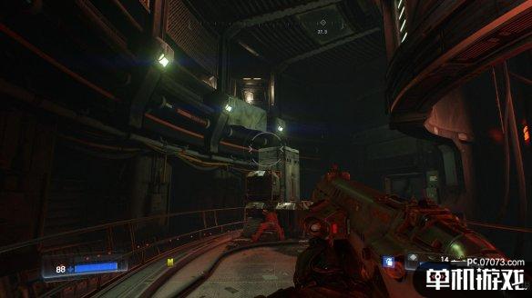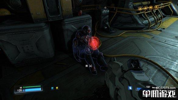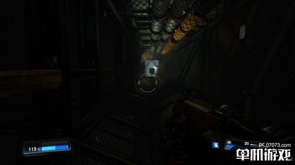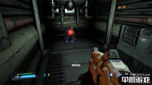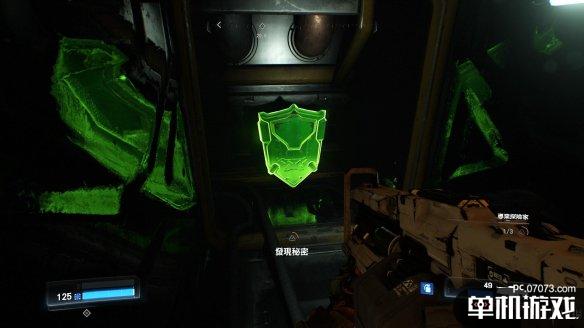 对着电源控制器点E给设施内使用备用电源(激活电源的时候奥利薇雅那个老娘们的影像会从旁边的屏幕上会跳出说一些利用恶魔来为人类创造新世界的大话),然后反过身能看到一个正好能跳上的通道,从通道内得到一个护甲,即为发现秘密1/8.