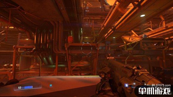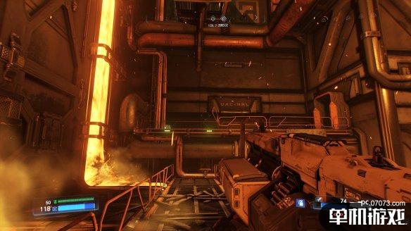 7,现在可以使用黄色钥匙去打开通向目的地的门了,进门后左边的小房间里有一具尸体,从他手上得到一把武器重型突击步枪。然后激活房间内门口墙壁上的门阀开关,往下一处走。