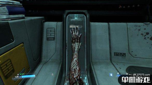 现在再次爬上之前看到护甲的那个台子。往右边走,跳到对面去,看到被怪物虐杀的人的尸体,E键互动,将尸体的手拽下来(好血腥)。