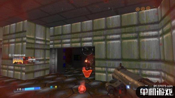 3,往回走会看到一只小怪,由于这边的地势比较高,我们可以直接跳回去。回到那个之前没有权限的小房间,E键互动,主角会将断手拍上去。现在该区域内另一个本来着火的门,火就被灭掉了。进去后发现是一个血角之巢。这里开始的战斗会遇到地狱毁灭者Ⅰ,这种怪物会释放镭射,攻击较高。
