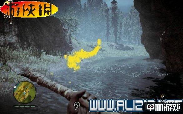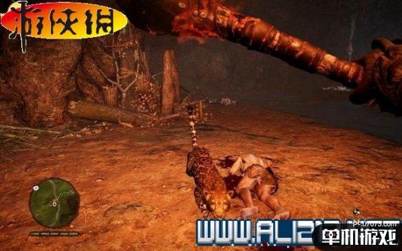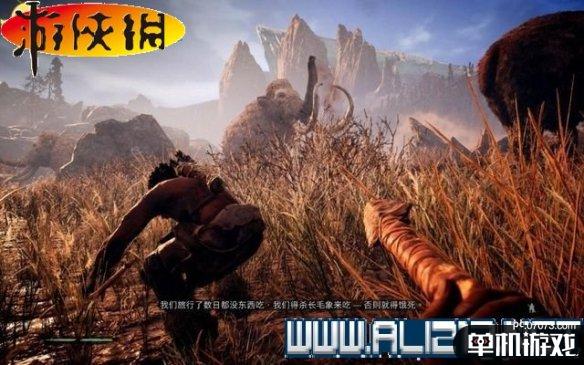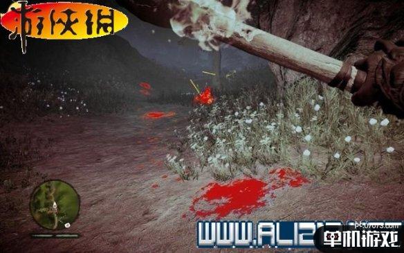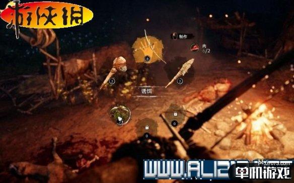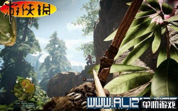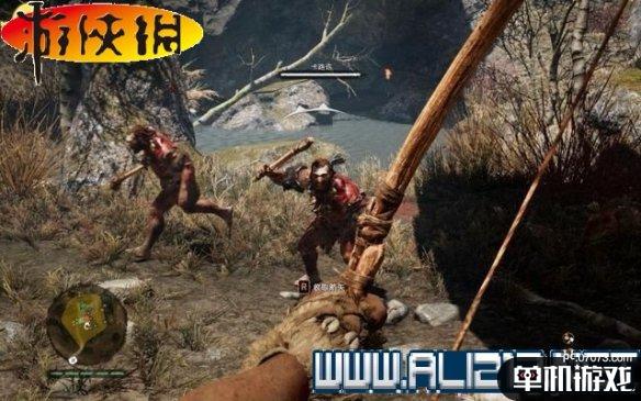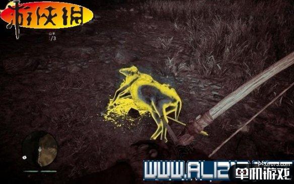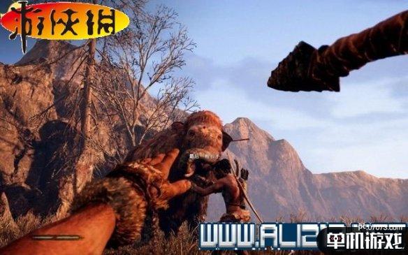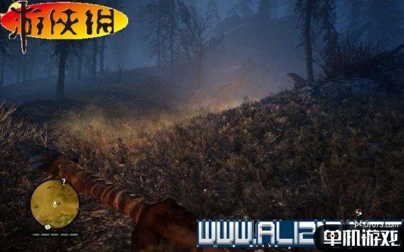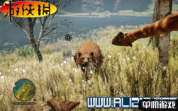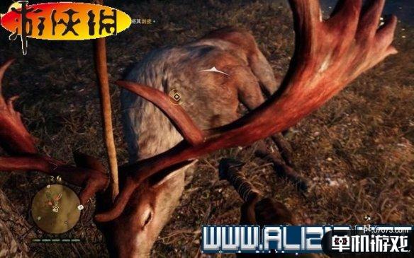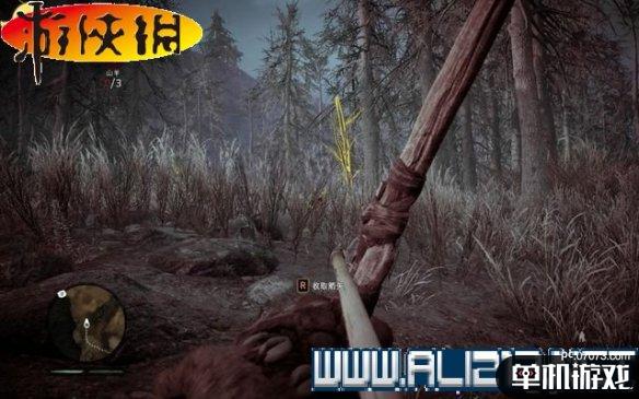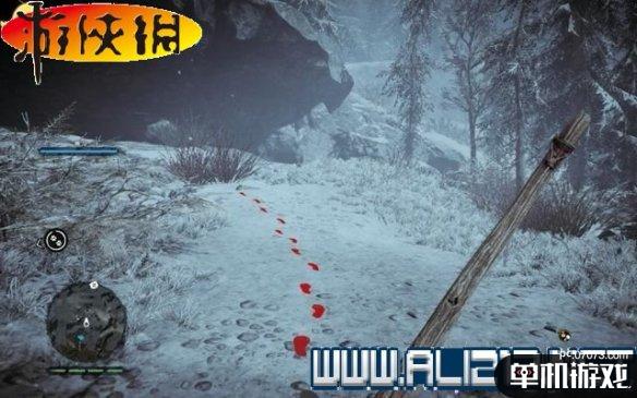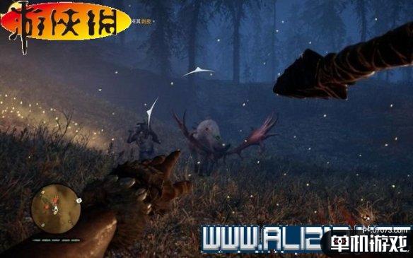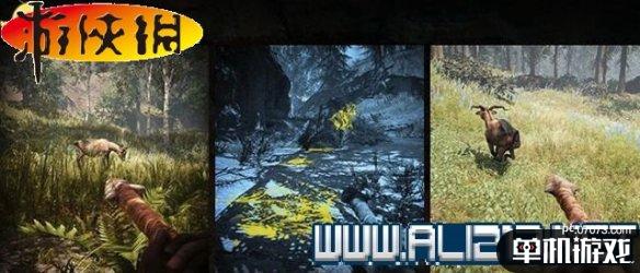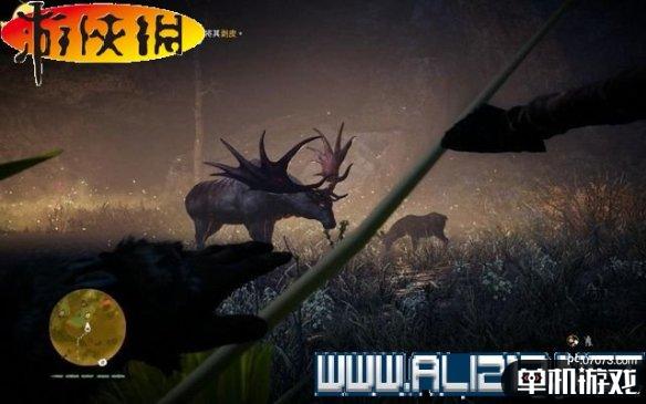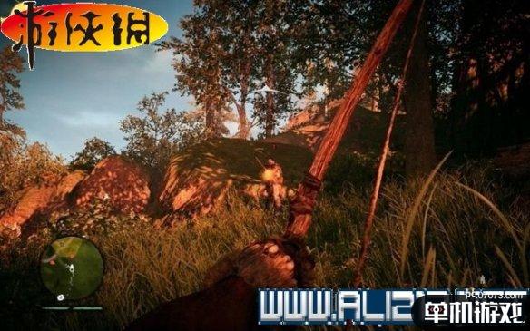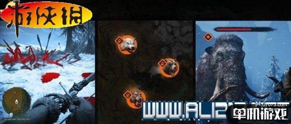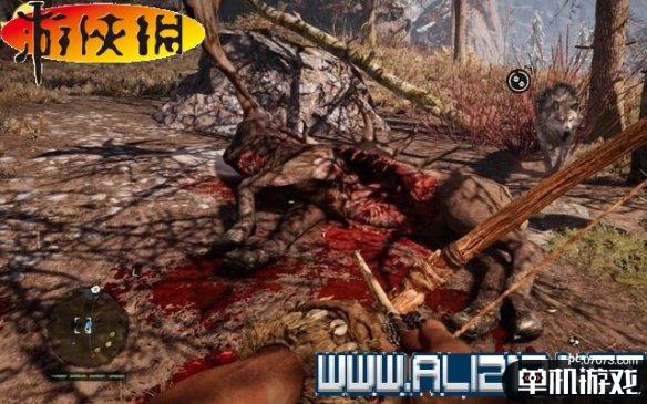 如果你要狩猎一只动物,按C键蹲下慢慢接近它,然后用矛枪或弓箭射它。受伤的动物会惊慌逃走,按V使用你的猎人视觉可调查地下留下的动物血迹,一路追踪过去。