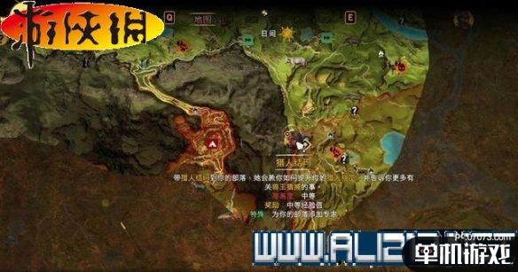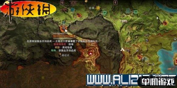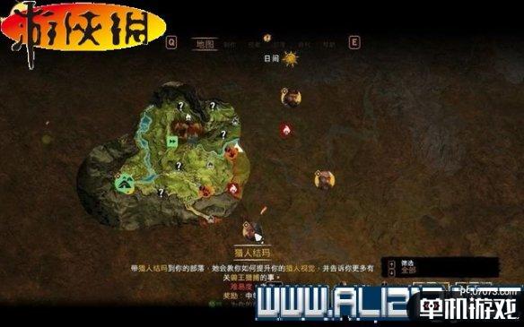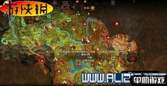 快捷键“M”。地图上显示着所有主线、支线小任务、收藏品、区域界标、未知地点,以及动物狩猎区。