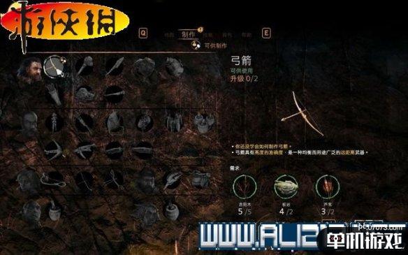 快捷键“Q”。这里显示当前拥有的所有武器和附件,在此菜单中你可直接点击制作武器,用鼠标右键点击武器可以点燃它,用来照明或给予目标火焰伤害。