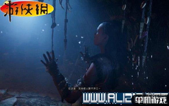 在乌耳离去后,塔卡得想办法逃出牢房。爬上身后的平台,从一具腰斩的尸体上拾取钩爪,返回地面,在上方找到一个锚点,用钩爪上去,摆荡到牢房的门顶石台,跳出去。