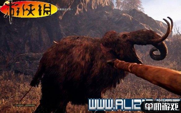 进入猎场后开始围猎,往它的头部投掷长矛。初期要注意站位,一定要躲在石头后面,免得被它撞到。