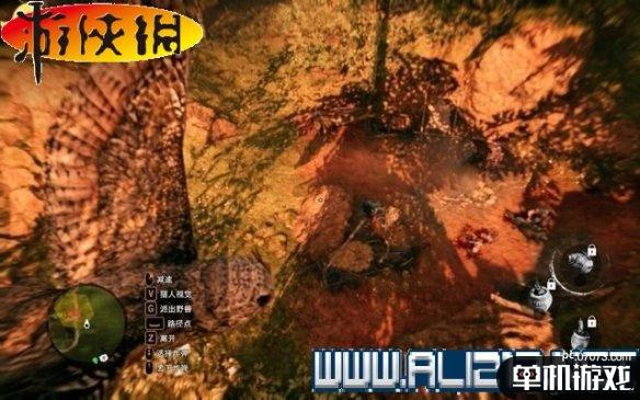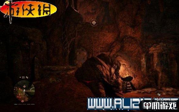 进入第二座洞穴,这里是环状地形,这里建议潜行,由右侧的弧状通道绕过去。
