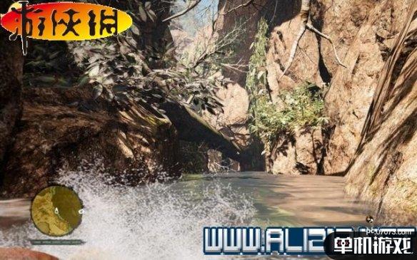 这里不用停留,跳入水坑潜游过去,再找另一条水洞游入主河道,沿着来时的路径逃离峡谷。任务完成。