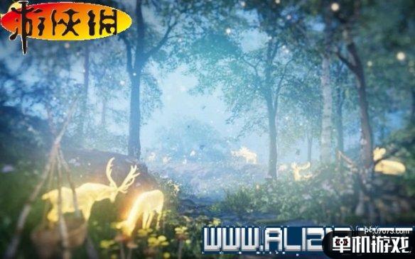激活任务后,在山林中沿着萤火虫的路径走。深夜里,它们就像是一团团发亮的烟雾。
