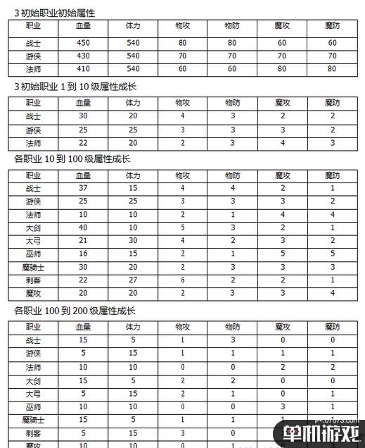职业成长属性表