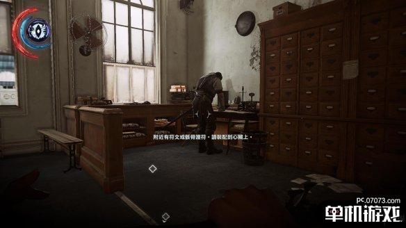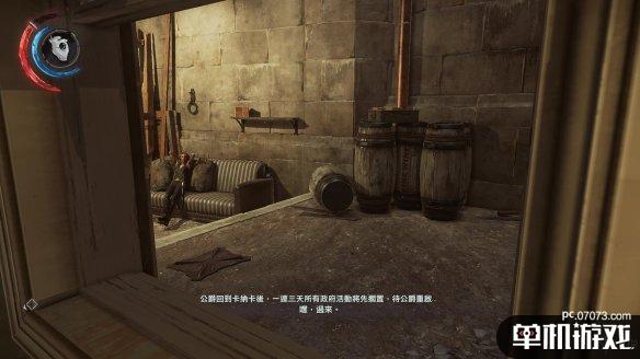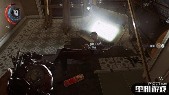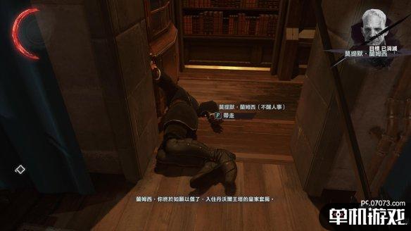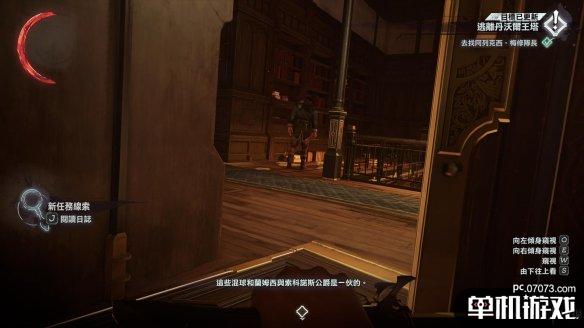 在窥视的门后动手容易被其他守卫发现,因此这里我们退回到下一个门口,兰姆西想回到安全室,这里是必经之路。在此处守株待兔,等待兰姆西抵达即可。