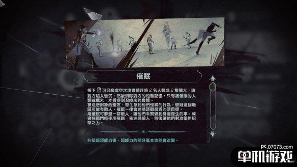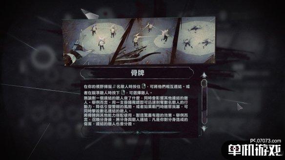 骨牌可以链接两个人类目标。使用这项超能力时,任何采取的行动会影响所有联结的目标。举例而言,你用一支昏睡非标即可迅速剥夺数名敌人的行动力,降低引发警报的风险。或者如果战斗时敌众我寡,也可以同时击杀数名处于联结中的敌人。