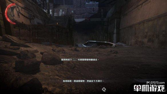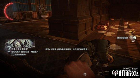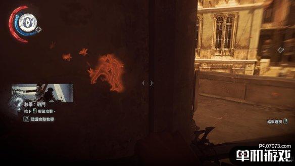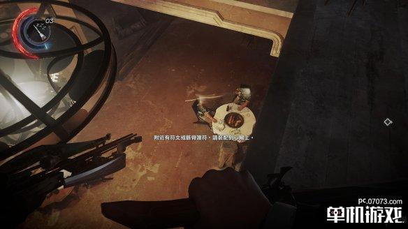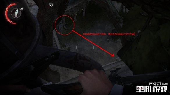 在途中会遇到一名守卫,小心不要冲得太快。这边会出现空中击昏的提示。注意,如果你想达成0击杀,空中跳下时的按键是Ctrl,而不是鼠标左键。