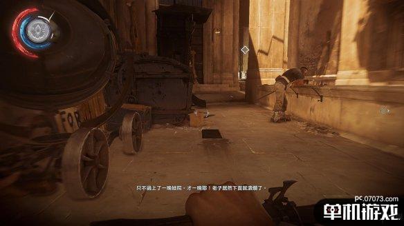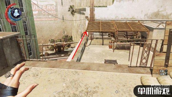 只是这边最后需要注意,在回到地面的时候,如果直接从高处跳到遮阳棚上,会惊动守卫。笔者的办法是一点点往前挪动,之后用远攀抓取地面。或许也可以先将尸体丢到地面后自行着陆,不妨SL大法试试。
