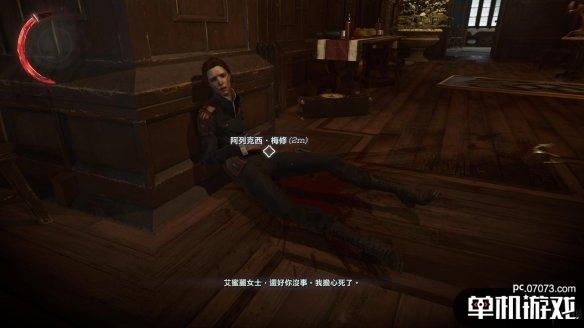 出去寝室后往右走,可以看到一扇没有被窗户关上的窗台,进入后找到倒地的梅修队长。她会告诉艾米丽一个重要情报:在今天稍早的时候有一个船长在码头,艾米丽可以从安全室逃离皇宫,并且前往码头乘船离开。安全室就在梅修的后面,但是需要戒指作为钥匙——而戒指则被兰姆西带走了,所以此刻的目标就是找到兰姆西并夺回戒指。