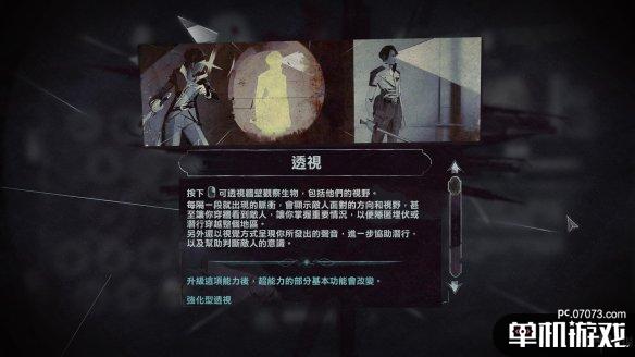 使用透视后每隔一段时间就会出现脉冲,显示敌人面对的方向和视野,甚至让你能穿墙看到敌人,让你得到重要的情况,以便隐匿埋伏或者潜行穿越整个地区。另外还会以视觉方式呈现你所发出的声音,进一步协助潜行,以及帮助判断敌人的意识。