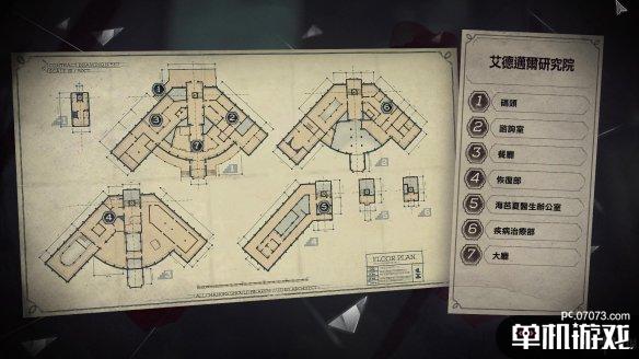 之后通过前厅进入医院。进入一楼即可在正面墙壁上找到医院的地图。