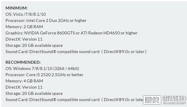 而在推荐配置部分,需求四核处理器以及支持DX11的显卡,而这部分的硬件需求同样是属于中端主流级别的硬件需求,并不会对台式机游戏平台造成很大的性能困扰,但对于笔记本平台来说,如果想有一个较好的游戏运行流畅度的话,中高端定位的游戏本将不可缺少,这是考虑到笔记本电脑的硬件性能定位特性相比台式机要稍弱,自然要获得好的运行游戏运行效果就需要提升配置的定位水平了。