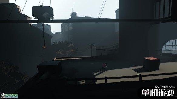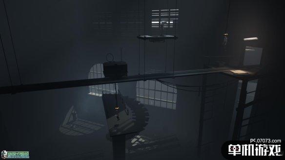 在一个有阳光照射的区域,抬头可以看到高处的箱子。从右侧爬上楼梯后来到如图所示的区域。这里需要把横木往右边推,来达到一个踏板的作用。之后启动开关把横木升高,就可以抵达高台箱子的所在了。注意推箱子的时候要小心,看到箱子有下落的趋势就立刻离开,不然会摔死。