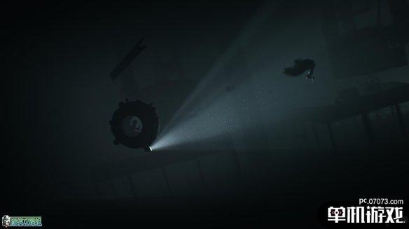 在这一侧会发现一个新的敌人,水鬼。也具有很强的攻击性,会砸碎玻璃来杀死小男孩。但是水鬼很怕光,这边需要用潜水器的探照头驱赶水鬼,在如图所示的位置等待水鬼远离后冲撞大门让其落下。之后将上方木板撞坏即可抵达外面来到沙滩。