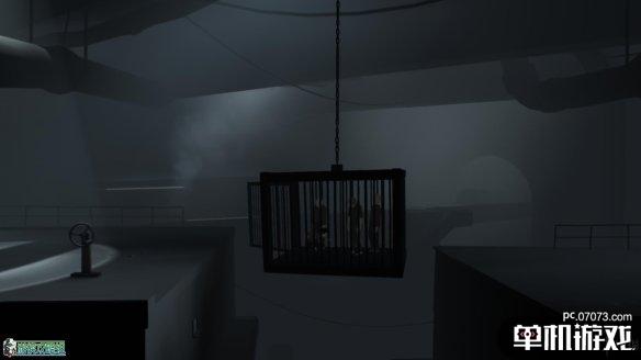 通过铁链来到上层,往前后会遇到探照灯,一旦被照到就是死路一条。这边可以靠上方的柱子躲避探照灯,并且在间隔中扭动开关把右边的笼子降下来。不要贪进度,而是要时刻注意探照灯的位置。降下来后可以通过笼子来跳到对面。不过对面也有两个探照灯。看好时机,从右侧一扇红色的机关门里进入建筑物。
