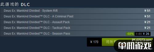 该游戏有5个DLC,仅季票DLC降价68%售26元,其余DLC均保持了原价。
