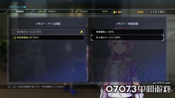 武器改造,能对武器所附加的特殊效果「记忆晶片(メモリーチップ)」进行强化或替换。武器相互合成后,基底武器将继承素材武器的记忆晶片。有着複数记忆晶片的武器,似乎还能附加複数效果。