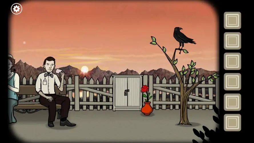 1、点击James上衣的口袋,得到手帕。拿花瓶里的花,得到玫瑰。点击树上的乌鸦,获得羽毛。