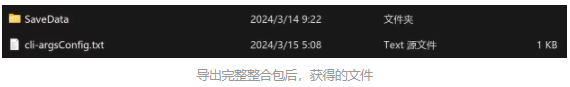 导出完后会弹出一个文件夹,如果想发给别人这个模组包,只需将SaveData里的两个文件夹移动到于SaveData同级,再删除SavaData文件夹和另一个txt文件(见下图)