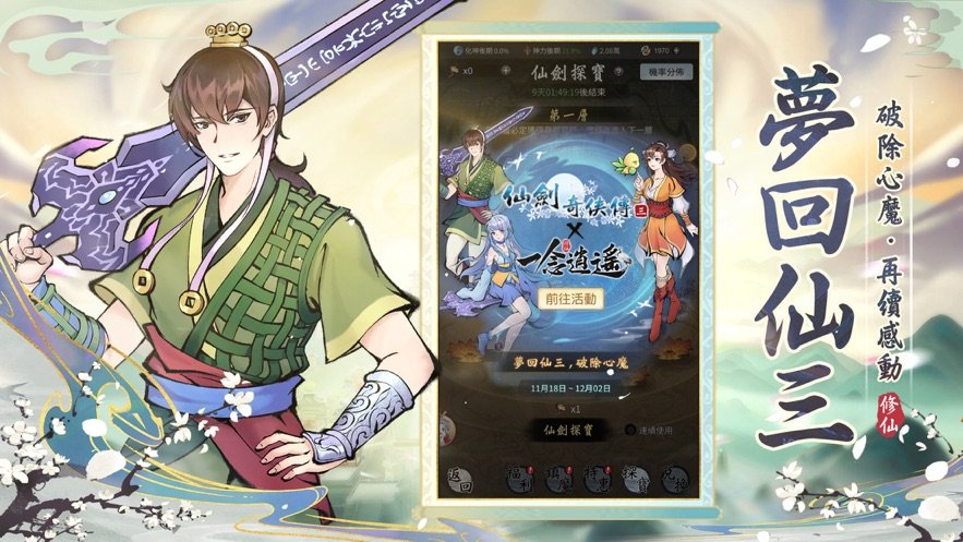 【一念逍遥梦回仙剑】是款经典耐玩的修仙手游,而且还可以随时挂机,在游戏里修仙,还可以在游戏里感受更多渡劫修仙的旅程哦,各种的游戏场景玩家都可以体验玩,而且还可以自由的组队冒险玩,拉上自己的小伙伴一起来修仙,一起在游戏里挑战更多的副本。