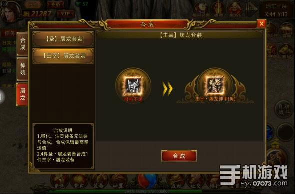 在游戏中,大家随着等级的提升需要更换新的装备,获得新装备的方式除了打怪、PK和BOSS之外,还可以将高阶的装备进行延伸的合成,例如转生装备可以合成为神装,屠龙套装可以合成为圣屠龙套装,而圣屠龙套装则可以合成为主宰屠龙套装,提升的战力以及攻击力可不是一点点哦。